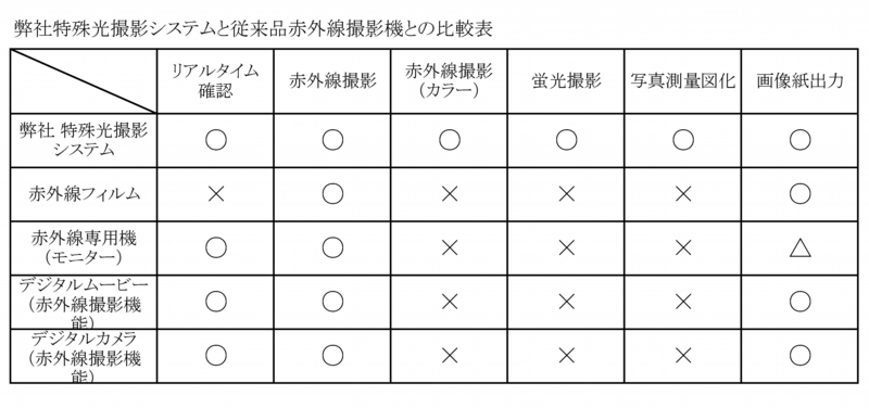 従来の赤外線による撮影調査は,赤外線フィルムを使用しての撮影,赤外線専用カメラによるモニタリング,近年ではデジタルムービーやデジタルカメラなどの汎用デジタルカメラによる赤外線撮影機能を利用しているのが現状です。