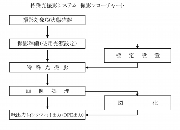 装飾古墳の彩色壁画や図文,色彩を施してある絵馬などの色彩画などの有形文化財には,赤外線・カラー赤外線 の撮影と合わせて,フォトルミネッセンスや蛍光反応を利用した色彩抽出撮影をすることで顔料の残存状況,くすんでしまった色彩の抽出などが可能です。
